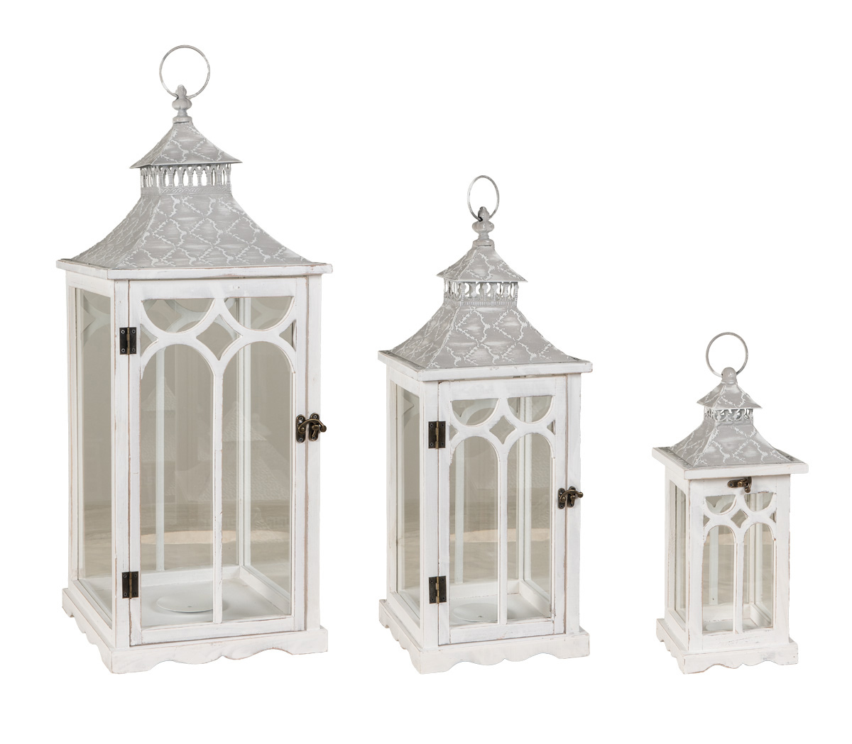 Διακοσμητικά Φανάρια Σέτ 3 Τεμαχίων , Ξύλο – Μέταλλο , 37 , 58 Και 75cm