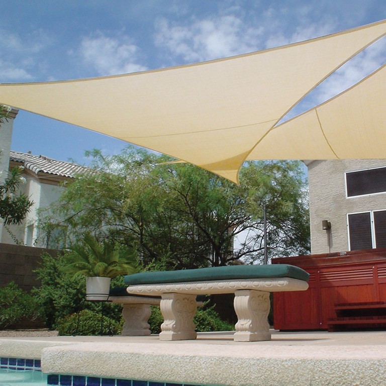 Εκρού Τριγωνικό Αδιάβροχο Πανί Σκίασης 350 x 350 x 350cm
