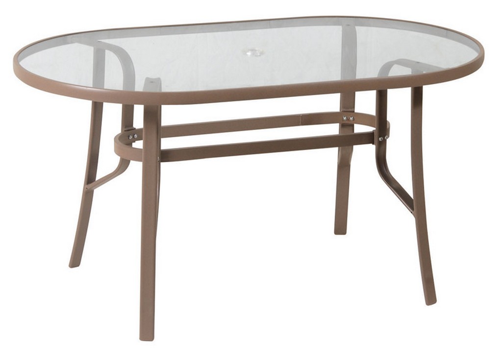 Καφέ Οβάλ Μεταλλικό Τραπέζι Με Πλαίσιο Αλουμινίου Και Τζάμι 140 x 80 75(h)cm