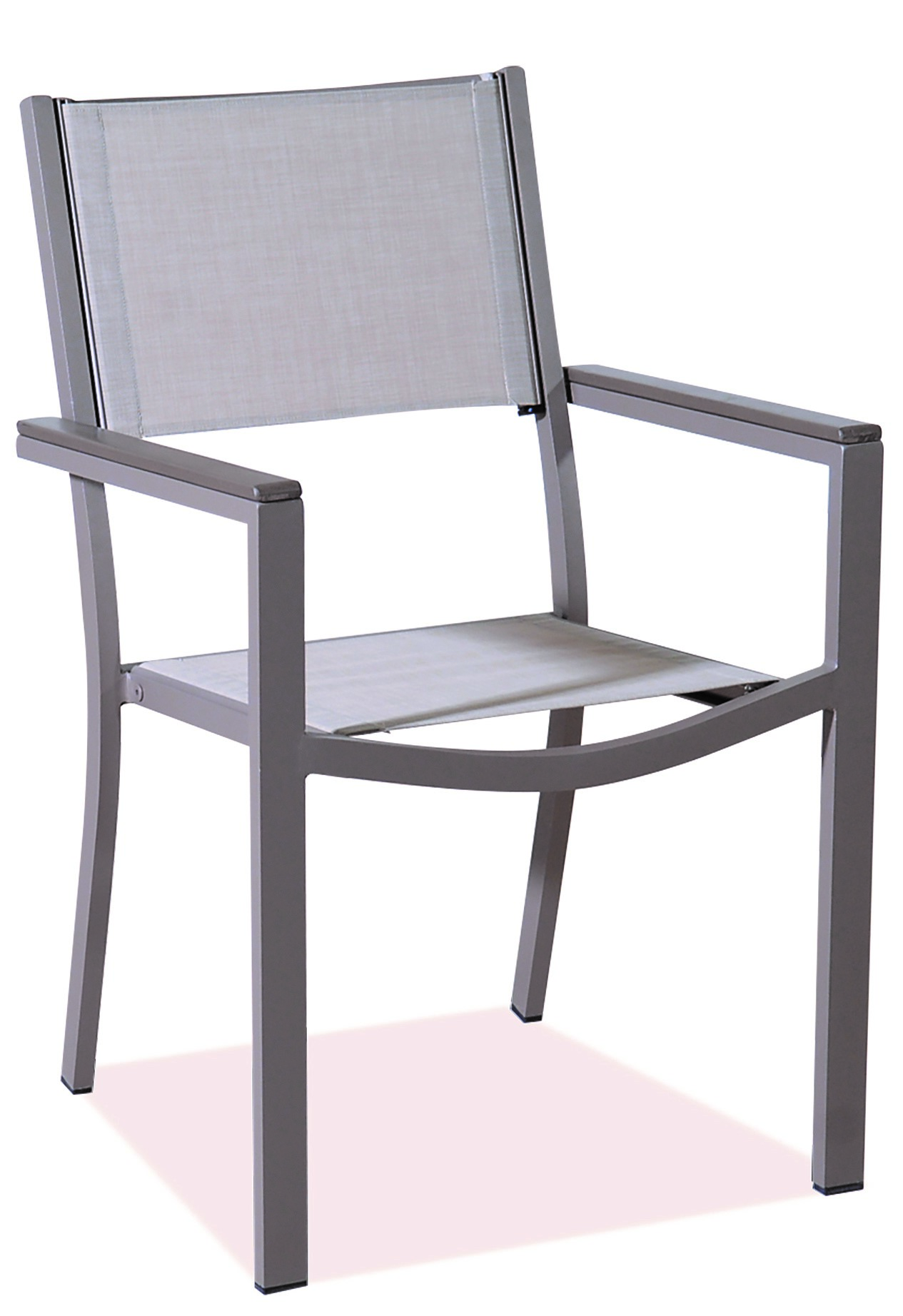 Καφέ Στοιβαζόμενη Πολυθρόνα Κήπου Αλουμινίου Με Εκρού Διάτρητο Ύφασμα