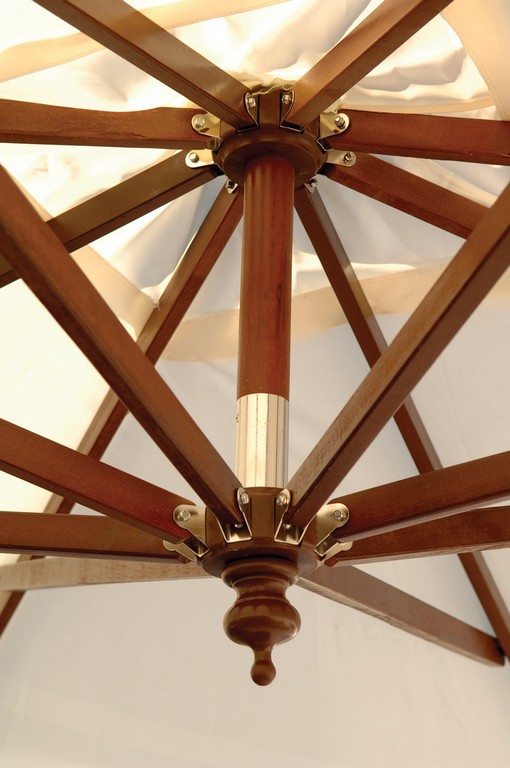 Χαρακτηριστικά : Διάσταση : 300 x 300cm Ακτίνες : 8 Κορμός : Ξύλινος Διάσταση Κορμού : 93 x 93mm Υλικό Πανιού: Αδιαβροχοποιημένο Πολυεστερικό