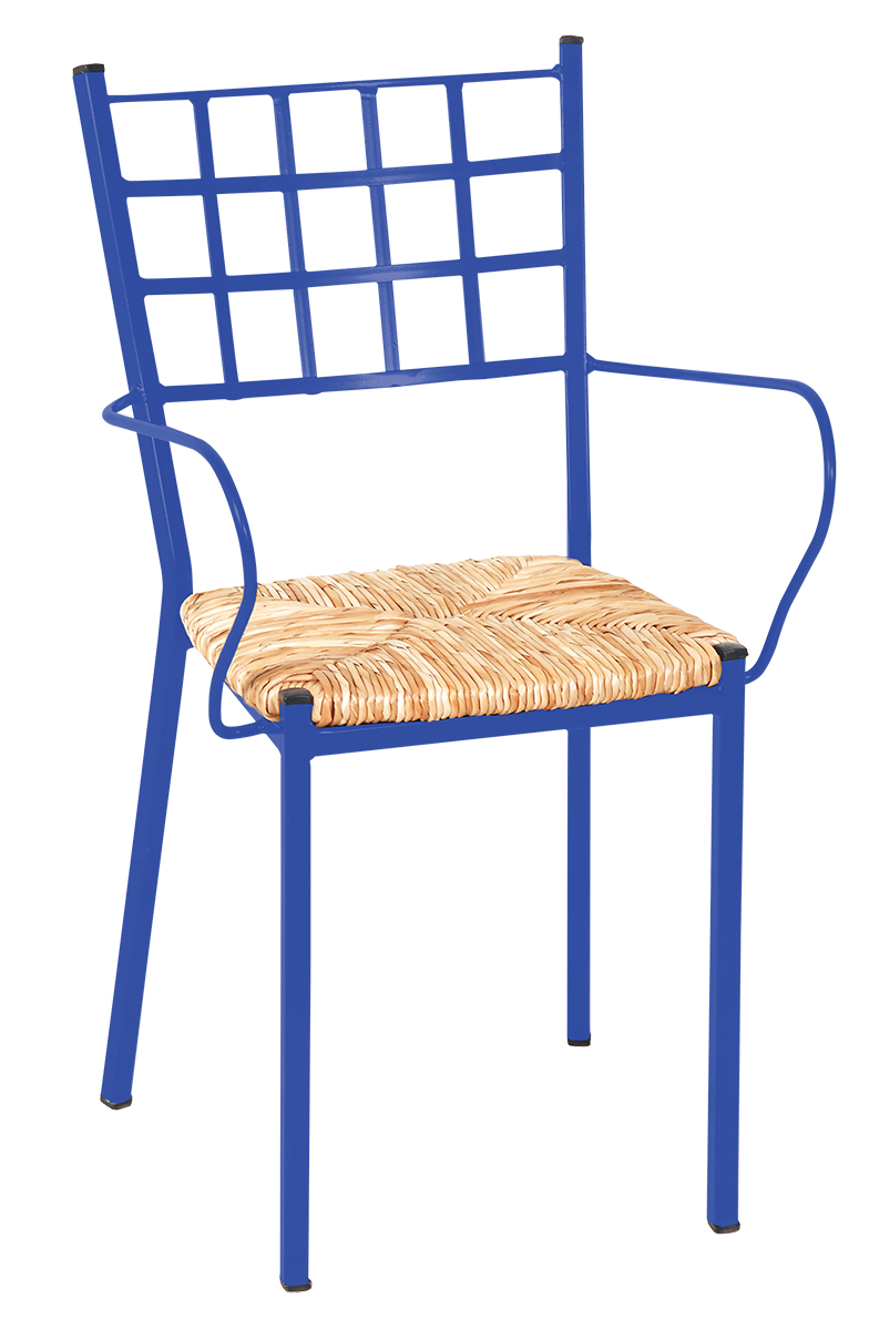 Μπλέ Αγαλβάνιστη Μεταλλική Στοιβαζόμενη Πολυθρόνα Με Κάθισμα Ψάθα