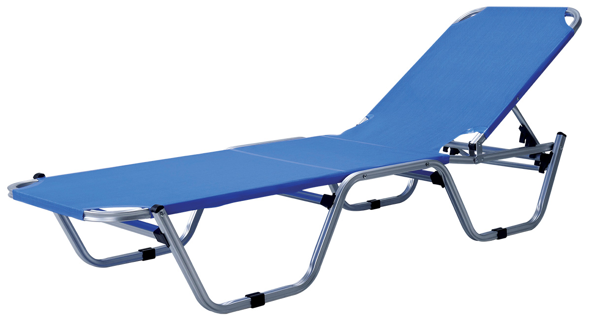 Χαρακτηριστικά : Τύπος : Πτυσσόμενη 5 Θέσεων Μήκος : 191cm Φάρδος : 60cm Ύψος : 30cm Πανί : Διάτρητο 2×1 Χρώμα : Μπλέ Σκελετός : Αλουμινίου