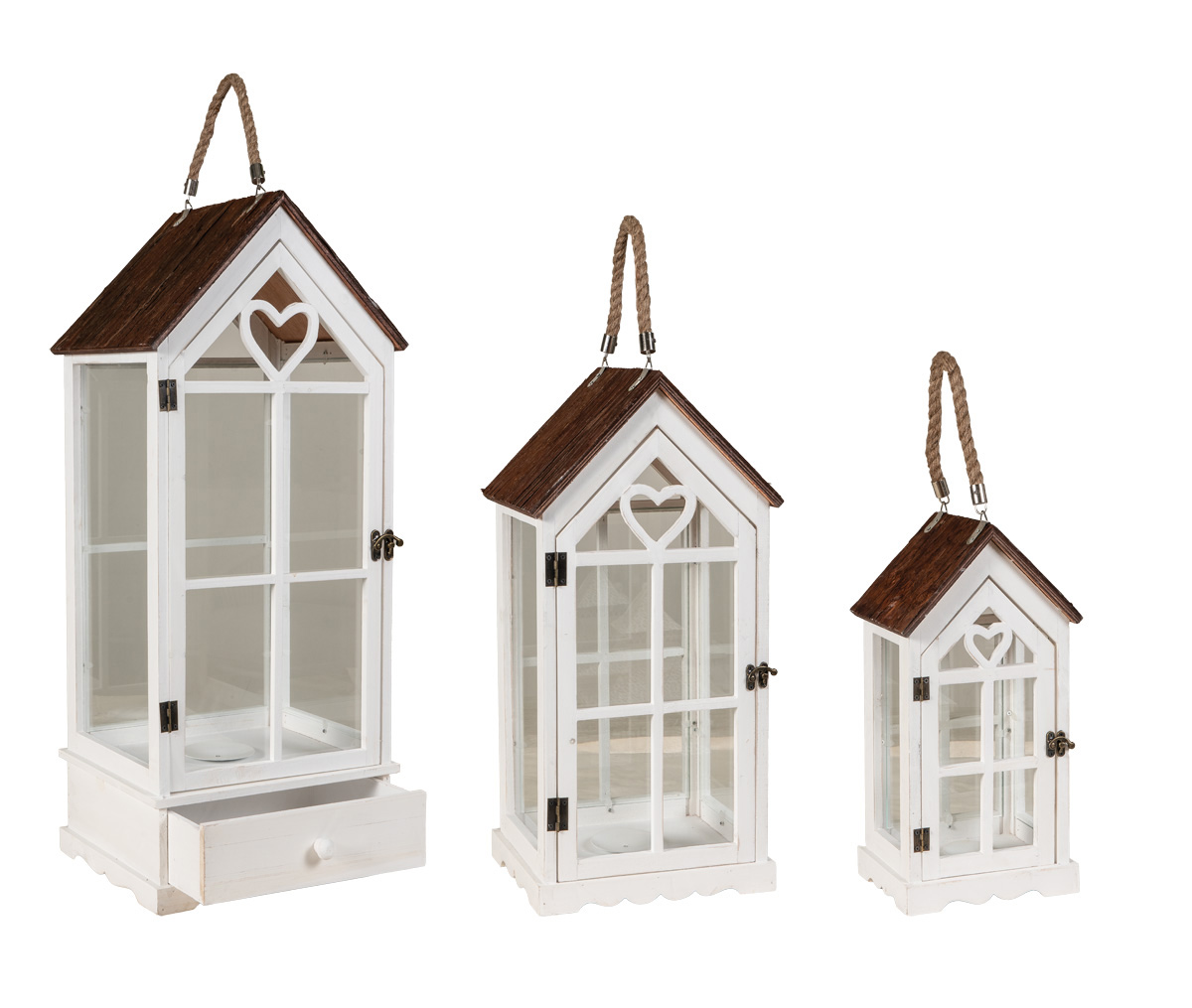 Ξύλινα Διακοσμητικά Φανάρια Σέτ 3 Τεμαχίων , 40, 55 Και 80cm