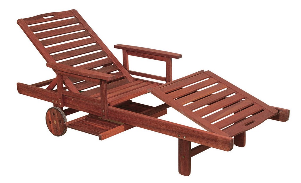 Ξύλινη Ανακλινόμενη Ξαπλώστρα Με Μπράτσα Και Ροδάκια 198 x 60 x 30(h) cm ,Red Shorea
