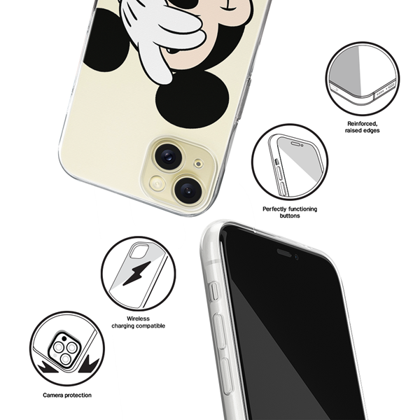 Disney Case Apple iPhone 15 Plus Mickey Partial Print Hiding Transparent