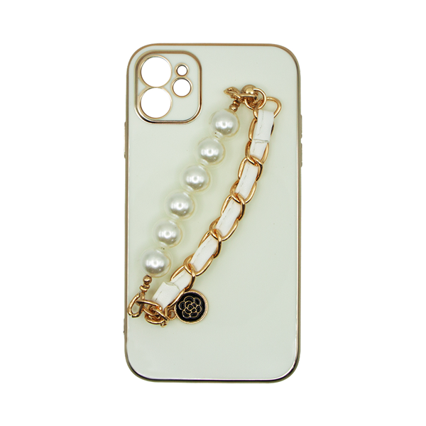 Vivid Silicone Case Pearl Chain Holder Apple iPhone 11 White/Gold